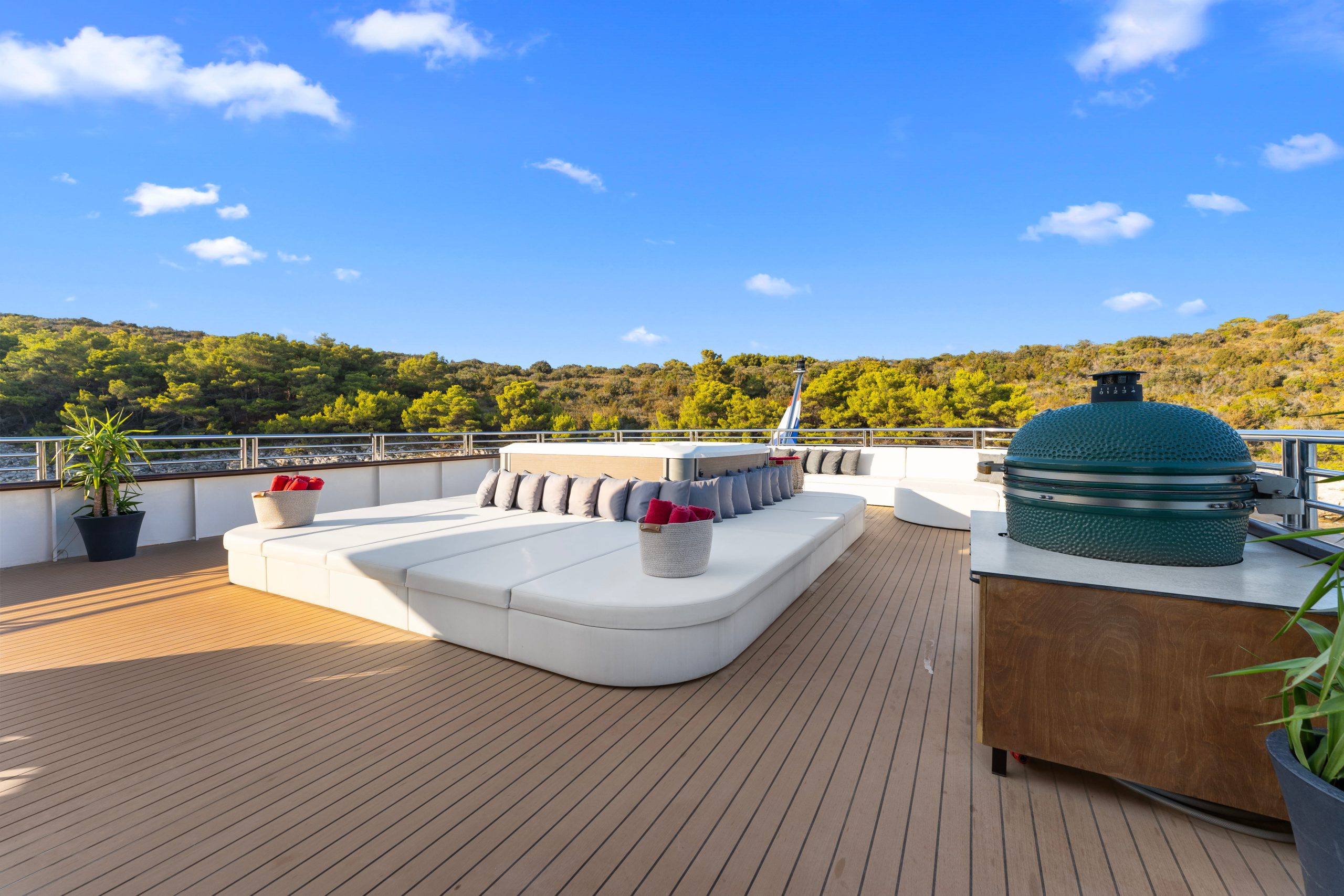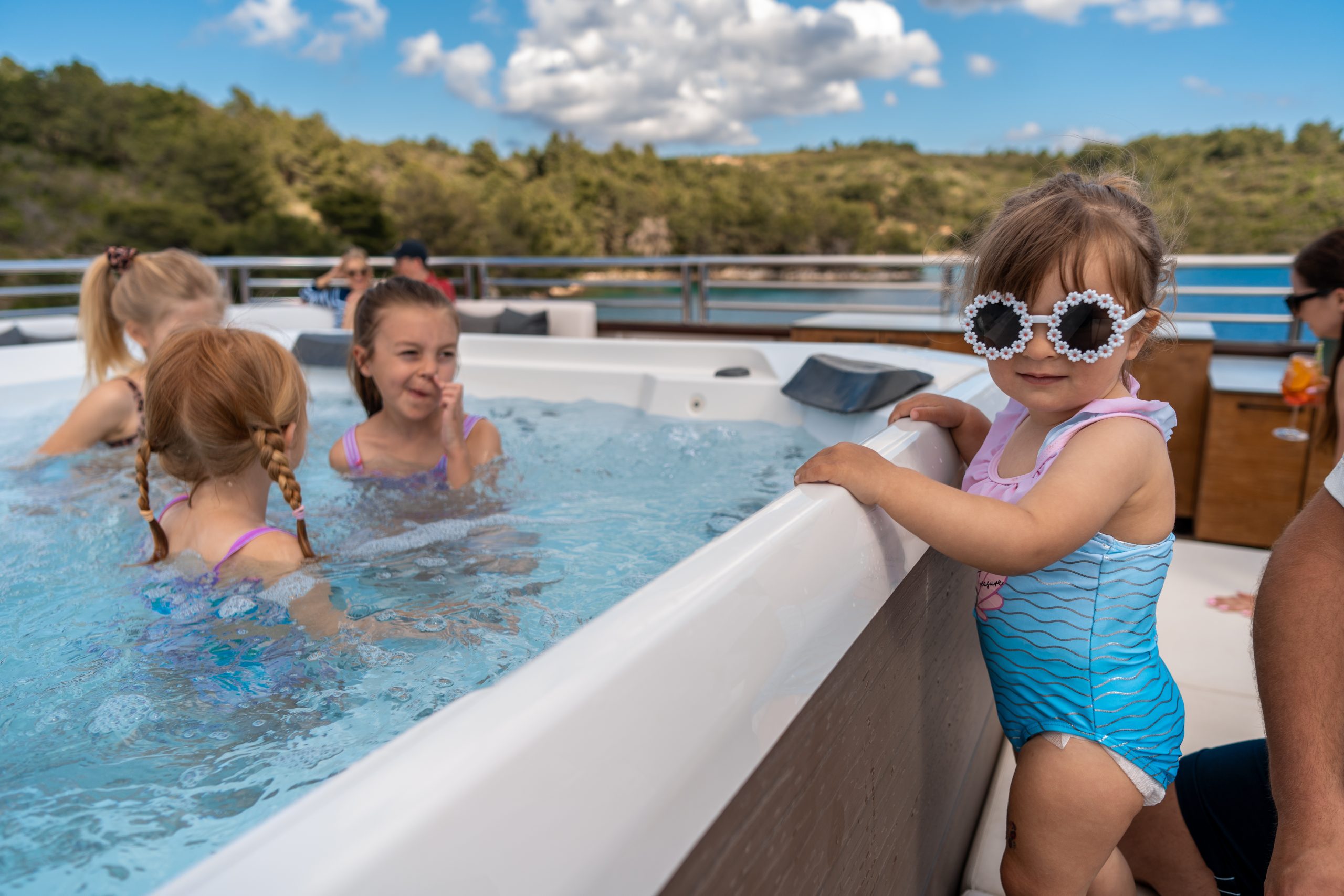 Long lunches on deck. Easy afternoons by the water. Cinema nights, sauna time, and sunsets from the jacuzzi. Space for everyone to come together, and enough room for every guest to enjoy it in their own way. This is what makes Alfa Mario different. A yacht made for bigger groups, without losing the feeling of comfort, style, and ease.